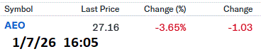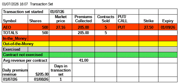 I’ve sold 5 AEO PUT contracts. At this price I cannot cover many contracts but it seems to be the best right now.